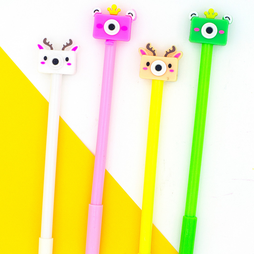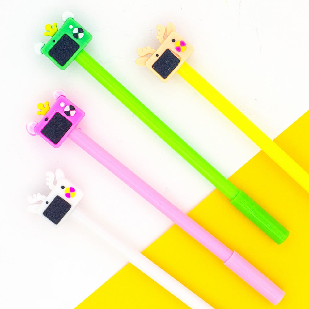قلم حبر على شكل كاميرا من الخلف وعدسة كاميرا لطيفة من الامام ، متوفر بأربعة الوان زاهية " وردي ، أخضر ، أصفر ، أبيض"