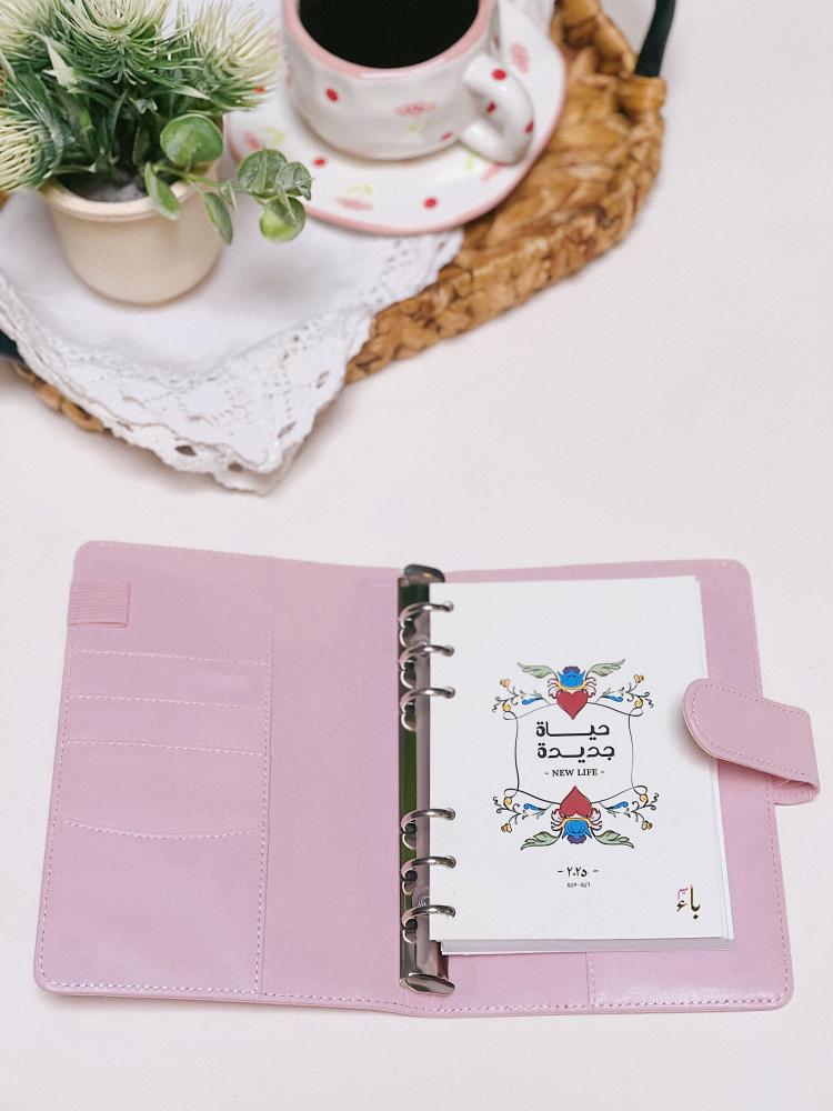 غلاف مصنوع من الجلد، يتميز هذا المنتج بغلقه عن طريق المغناطيس وكذلك بامكانية الاحتفاظ وتخزين اوراقك المهمة حيث يوجد به العديد من الجيوب الداخلية، ومدخلين للأقلام ، يحتوي على 6 فواصل حَلقية فضّية قابلة للفتح والإغلاق (لإدخال الورق او تغييره)وهو غلاف انجليزي .