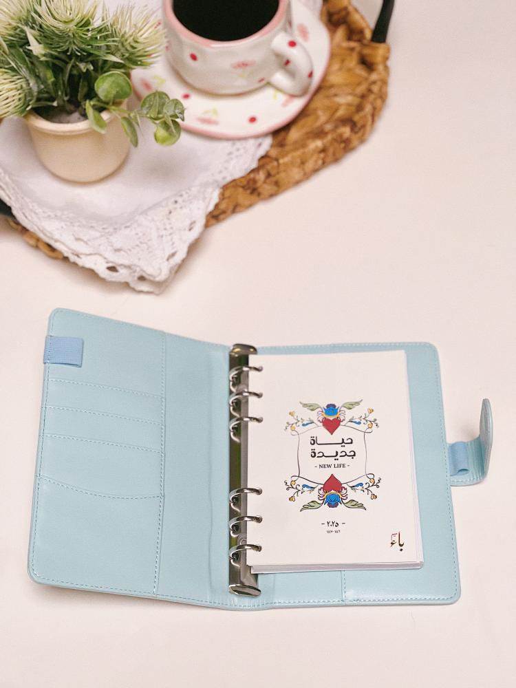 غلاف مصنوع من الجلد، يتميز هذا المنتج بغلقه عن طريق المغناطيس وكذلك بامكانية الاحتفاظ وتخزين اوراقك المهمة حيث يوجد به العديد من الجيوب الداخلية، ومدخلين للأقلام ، يحتوي على 6 فواصل حَلقية فضّية قابلة للفتح والإغلاق (لإدخال الورق او تغييره)وهو غلاف انجليزي .