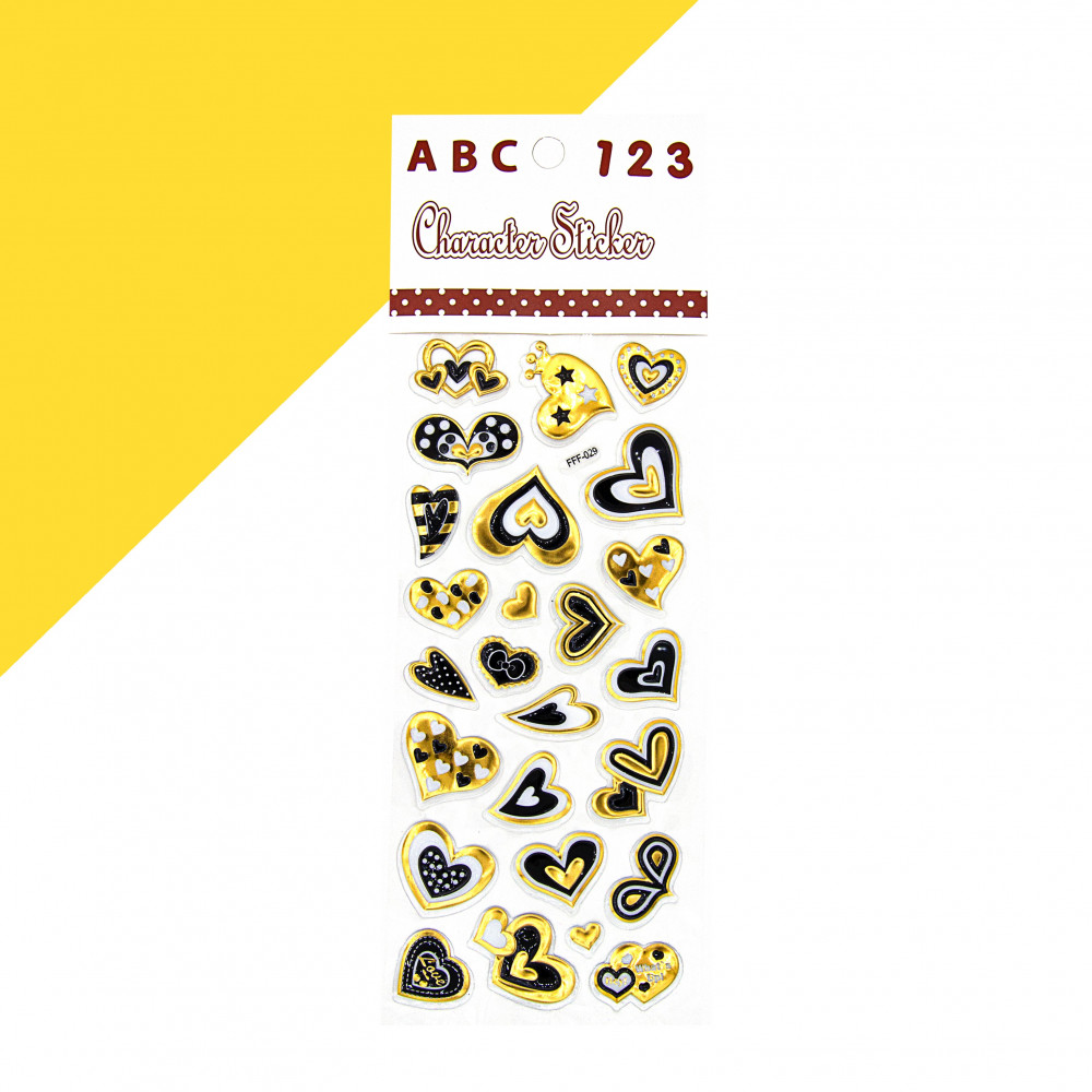ستكرات عديدة على شكل قلوب منوعة الأشكال والأحجام باللون الذهبي والأسود